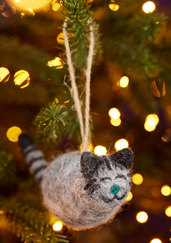 Cat lovers will purr over these adorable needle felt decorations with stripey tails and faces. Ideal for year-round display and a perfect small keepsake gift; a lovely handmade hanging ornament will add cheer to someone's day.