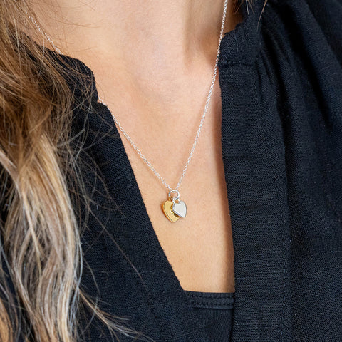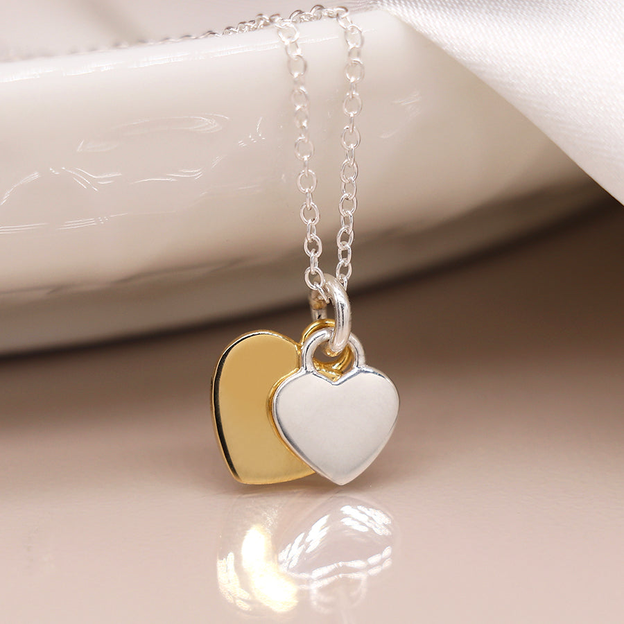 PM Sterling Silver & Gold Double Heart Necklace