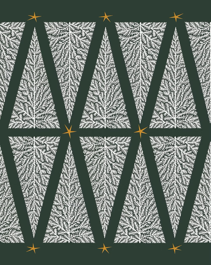 Christmas tree print in white ink with gold star detail, on green pure Irish linen fabric.