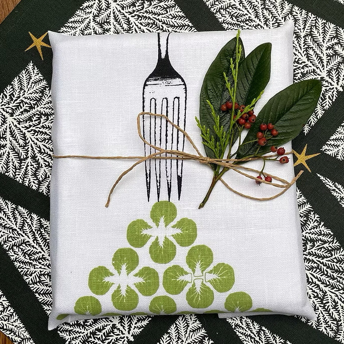 An original design, screenprinted by hand using non-toxic waterbased ink.