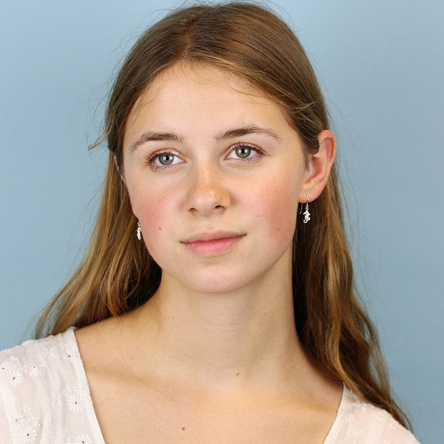 Sterling silver drop earrings with intricately detailed seahorses on fine sterling silver earring hooks.
