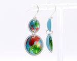 Lisa paints unsealed anodised aluminium with specialist aluminium inks, she then submerges the metal in a dye bath to create interesting variations of colours and prints. The metal is finally steamed which permanently seals the colour. Each piece is hand made in her Glasgow based studio. All designs are pierced, formed, filed and polished by hand for a beautiful finish.