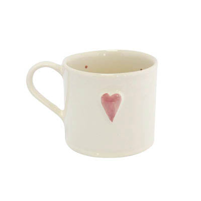 This gorgeous large Shaker mug by deliverance county holds 250ml and has a heart embossed into the ceramic that is hand painted red and also has red dots painted inside. The mug is highly durable and is suitable for dishwasher and microwave use.